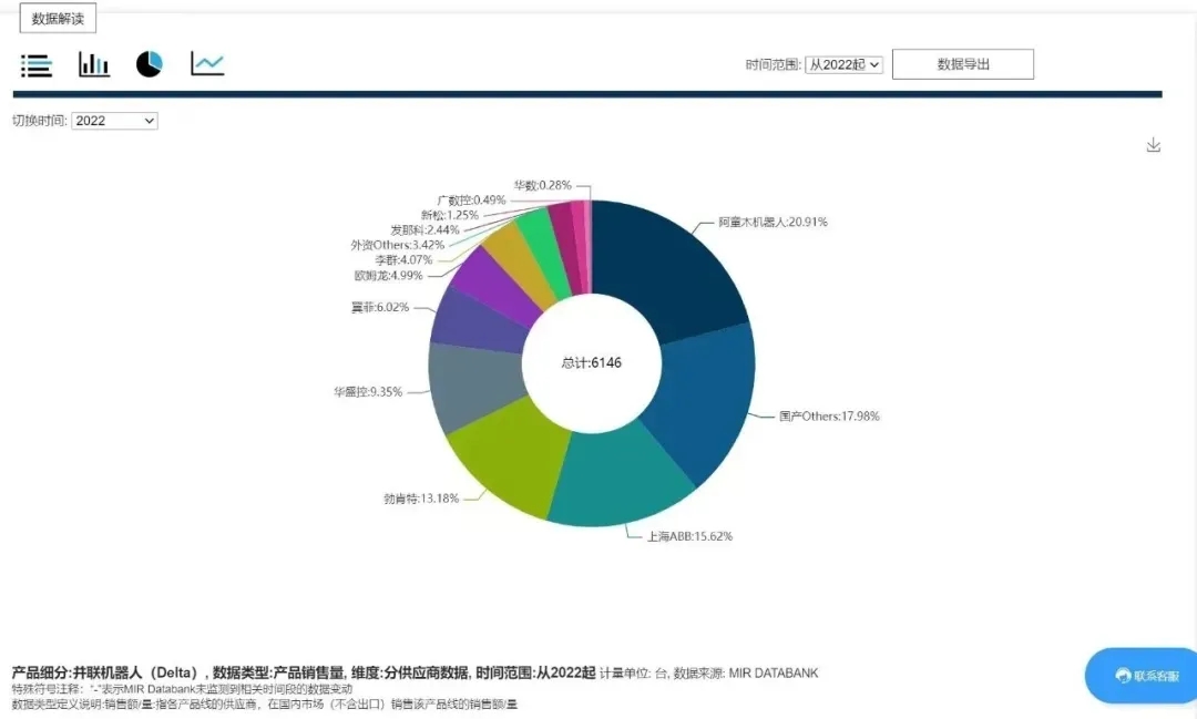 行業(yè)層面,過往十年,中國工業(yè)自動化行業(yè)穩(wěn)步增長。人工替代與國產(chǎn)替代雙趨勢背景下,國產(chǎn)工業(yè)機器人出貨量同步實現(xiàn)快速增長。據(jù)第三方數(shù)據(jù)顯示,截至目前,中國國產(chǎn)工業(yè)機器人占比已超30%。伴隨民生需求改善,國內(nèi)包裝領域并未受近年疫情及大環(huán)境影響。這為擅長快速理料、分揀、包裝等應用的并聯(lián)機器人需求基本盤保持馳穩(wěn)向上。同時,近年,新能源新賽道增速強勁,拉動了并聯(lián)機器人整體銷量。