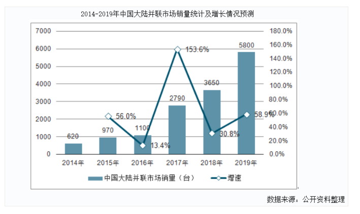 根據(jù)《2020-2026年中國(guó)并聯(lián)機(jī)器人行業(yè)研究與市場(chǎng)年度調(diào)研報(bào)告》顯示,中國(guó)并聯(lián)機(jī)器人2015年的銷售數(shù)據(jù)約為970臺(tái),2016年銷售約為1100臺(tái),2017年銷售約為2790臺(tái),2018年銷售約為3650臺(tái),2019年約4620臺(tái),保持了年均以50%的增速發(fā)展。