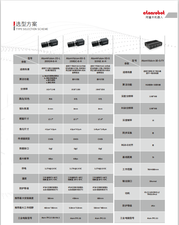 阿童木視覺系統(tǒng)型號(hào)參數(shù)