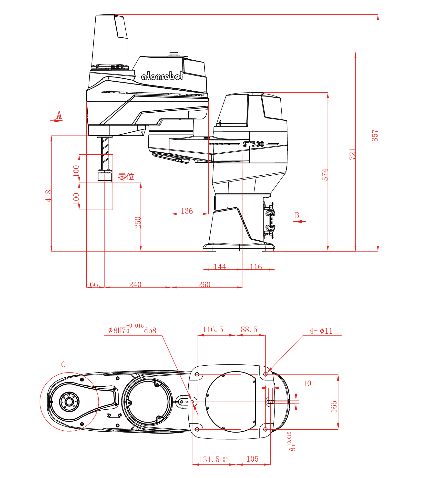 ST系列SCARA為阿童木機器人針對高速度、高精度分揀環(huán)節(jié)所開發(fā)的平面關(guān)節(jié)機器人,具備沿XYZ三方向平動以及繞Z軸轉(zhuǎn)動的空間四自由度。